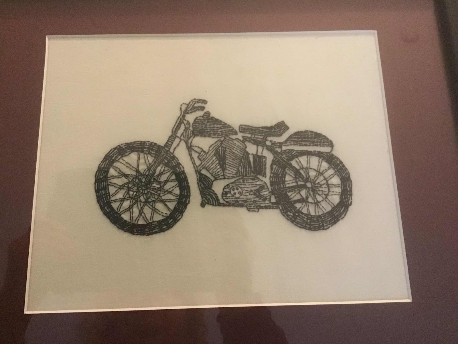 Perfection is an illusion. It’s not possible, there is always a flaw in art and hand embroidery. We can do our best and make spectacular art but there is always a flaw big or small. People are like that too. There is always something we don’t like about ourselves on any given day. Maybe we weren’t very kind to the lady walking oh too slowly in front of us, maybe we burnt our toast, maybe we got unnecessarily angry over something our imperfect spouse said. There is always something the inner critic can find to remind ourselves we are not what we wanted to be. But in the end it is best to remember that only Jesus was perfect and he suffered greatly for that perfection. We have to look at the whole picture be it a hand embroidered motorcycle or the person you wake up next to and remember that although it’s not perfect it’s pretty damn good. Be grateful, be humble, be love.